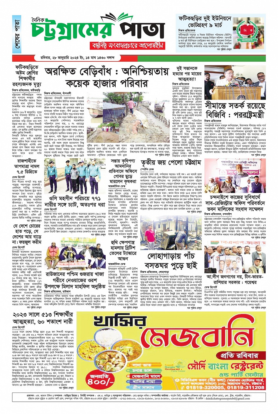 রোববার, ২৮ জানুয়ারী ২০২৪, ১৫ মাঘ ১৪৩০